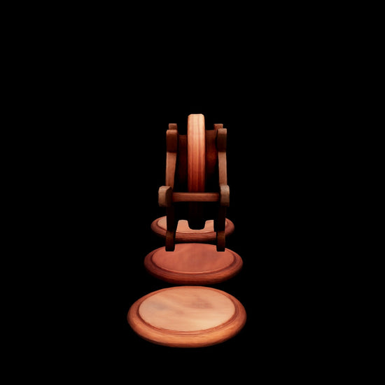 - Set of 6 round coasters with matching carved holder/stand